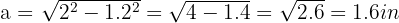 , 1.2 in, and hypotenuse 2 in. And we use the formula to calculate legs, then: