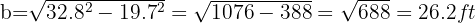 A 32.8 ft ladder is leaning against a wall. The foot of the ladder is 19.7 ft from the wall. What height does the ladder reach on the wall?