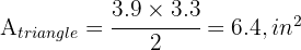 Now observe that the base of the triangle is 3.9 in and the height is 3.3 in.