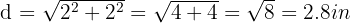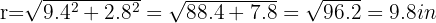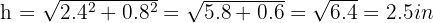 , we must consider the right triangle with vertical side 2.4 in, horizontal side 0.8 in, and hypotenuse