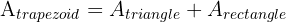 To obtain the area, we must observe that the trapezoid is made up of a right triangle and a rectangle, so its area will be equal to the sum of the areas of the triangle and the rectangle. That is: