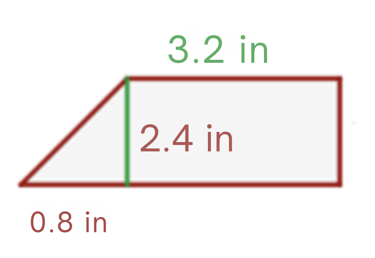 The perimeter of the trapezoid is the sum of the lengths of its sides. From the figure it follows that the top side of the trapezoid measures 3.18 in, the bottom side measures 3.9 in, and the height of the trapezoid measures 2.4 in. To find the diagonal side of the trapezoid, which we will call