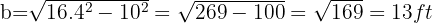From the figure we can consider the right triangle with legs 16.4 ft,