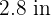 , we must consider the right triangle with vertical side 2.4 in, horizontal side 0.8 in, and hypotenuse
