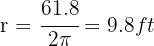 Calculate the area of a square inscribed in a circle with circumference 61.8 ft.
