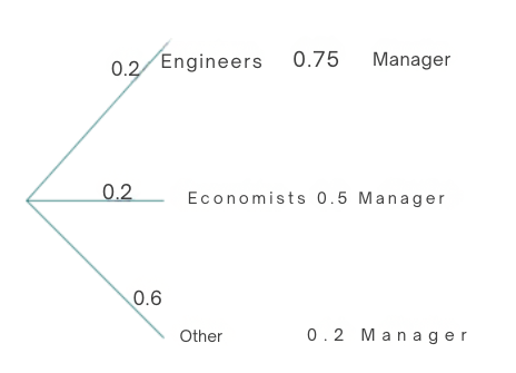 , that is, the probability that an employee is an engineer given that we know in advance that he or she is a manager. Following Bayes' formula we have: