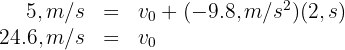 10 A ball is thrown vertically downward from the top of a building. If it travels 50 meters (164 ft) in 3 seconds, what is its initial velocity?