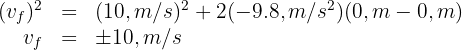6 To calculate the velocity when it returns to the starting point, we note that the final position equals the initial position. We use the formula