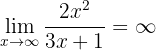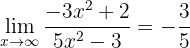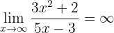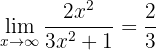 since the numerator and denominator are polynomials of the same degree (so the limit is the quotient of the leading coefficients). Furthermore, we have that