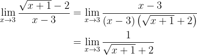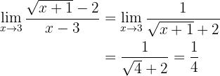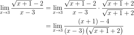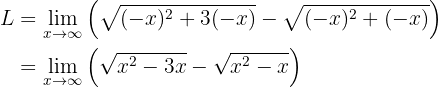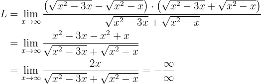 Now we need to algebraically manipulate the limits in order to eliminate the subtraction of infinities. This is achieved by "rationalizing" (that is, multiplying and dividing by the conjugate):
