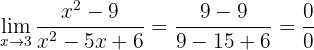 So we can observe that we have, again, an indeterminate form. To avoid the indetermination we will factor both the numerator and denominator (observe that the numerator is a difference of squares; while the denominator can be factored by finding a pair of numbers that when multiplied give 6 and when added give -5):