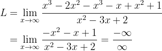 because the numerator is a polynomial of higher degree, but the leading coefficients have different signs. In this way, we have that the limit is: