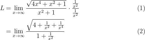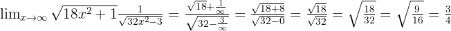 Therefore, being an indeterminate form, we must multiply and divide by the monomial of highest degree (; remember that we divide the powers of the numerator by 2 since they are inside a square root):