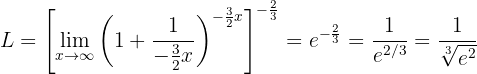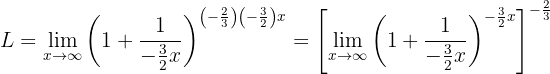 This is an indeterminate form. Therefore, we must perform algebraic manipulations to obtain some expression similar to the definition of . To do this, we first add and subtract 2 in the exponent (we will denote the limit as