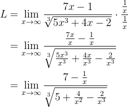 This is an indetermination of . Therefore, we must multiply and divide by the monomial of highest degree (either in numerator or denominator). In this case it's