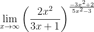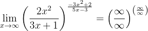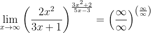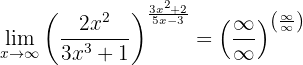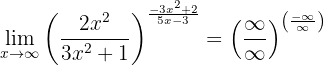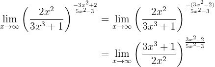 Therefore, we evaluate the limits of the fractions separately. In the base of the power we have that the numerator is a polynomial of higher degree, in addition to the leading coefficients having the same sign, therefore