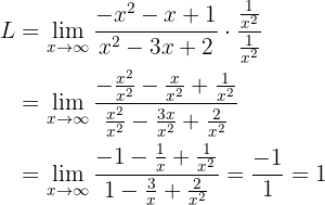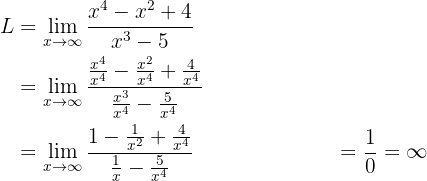 Since we now have an indetermination of the form , we will look to multiply and divide by an appropriate term to avoid the indetermination. The appropriate term is the monomial of highest degree in the numerator or denominator, that is,