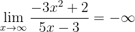 since the numerator is a polynomial of higher degree and the leading coefficients have different signs. Thus, the limit is