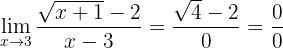 So we have an indetermination and must perform an algebraic manipulation. In this case, since we have an expression with radicals, we must multiply and divide the fraction by the conjugate of the numerator (since it's the one that has the radical):