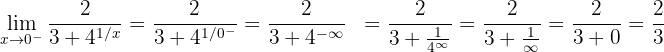 note that the function is practically the same as the previous one, but with only one sign changed. We calculate the limits of each fraction separately: