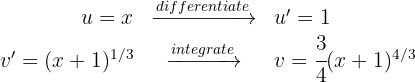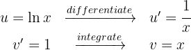 3 The last integral obtained is solved by integration by parts, so we choose