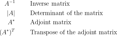 The calculation of an inverse matrix by the adjoint method is based on the following result: