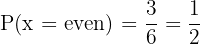 For it to be even, we have the following options: 2,4,6. This means there are 3 ways out of 6 possible, so the probability is