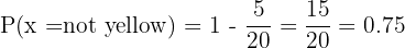 Since we must calculate the probability that it is NOT red, we can subtract from the total (1), the probability that it IS red, leaving the desired probability as