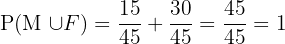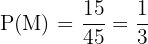 and from here we can see that there are 15 males and 45 students, so the probability that the missing student is male is
