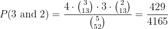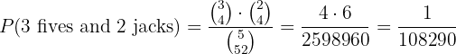 There are 4 fives and we want 3 of them; and there are 4 jacks and we want 2 of them, so