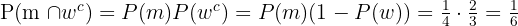 Here they are also independent events, so we can treat them as such; we just add the formula that calculates the probability that something does not occur: