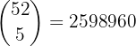 First, the total number of distinct 5-card hands, when grouping 52 cards in 5, is