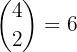 From four possible results n=4, let’s see in how many ways r=2 of them can be tails. In other words, we calculate the total number of groups of two elements (tails) that can be chosen from a total of four elements (tosses).