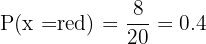 Out of 20 balls total, there are 8 red ones. So the probability is