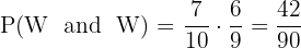First let's describe the sample space. Since there are two types of balls, red (R) or white (W), in our first extraction we can get either of the two balls, and since the quantity of each is greater than one, then (with or without replacement), in the second extraction we can also obtain either of the two, leaving the sample space as follows
