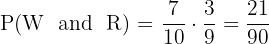 In this case since there is no replacement, the extraction of the first ball modifies the conditions of the second extraction, for example if a Red ball was obtained in the first extraction, it means that in the second extraction there is one less Red ball in the urn, i.e. 2 Red balls, and also one less ball in total, i.e. 9, this means they are dependent events.