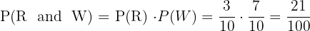 What happens with one does not affect what happens with the other; because of this they are independent events, so we can calculate the probability as follows: