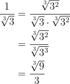 Remember that rationalizing consists of eliminating radicals from the denominator of a fraction. To do this, we multiply the fraction by an appropriate multiplicative identity of one.