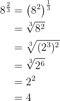 A power with a fractional exponent is equal to a root whose index is the denominator of the fraction