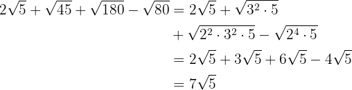 We will solve the exercises simply by decomposing the radicand into powers of prime numbers. Then with simple algebra, addition, and subtraction, we will solve the problems.
