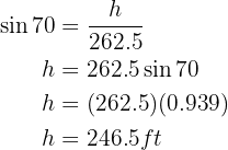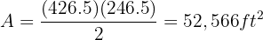 Now that we know the height measures 246.5 feet, we will calculate the area: