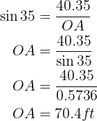 ), we will apply sine to the angle measuring 35° using the leg we know and