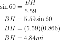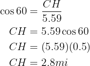 is 5.59 miles. Additionally, the angle formed by these roads is 120°. How far apart are