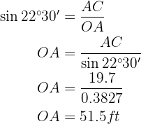 The length of the side of a regular octagon is 39.4 feet. Find the radii of the inscribed and circumscribed circles.