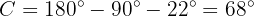Since we already know two of the three angles, we can calculate the missing one,