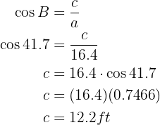 we will first calculate the cosine of the angle using the leg and hypotenuse we know, then apply the inverse function arccosine: