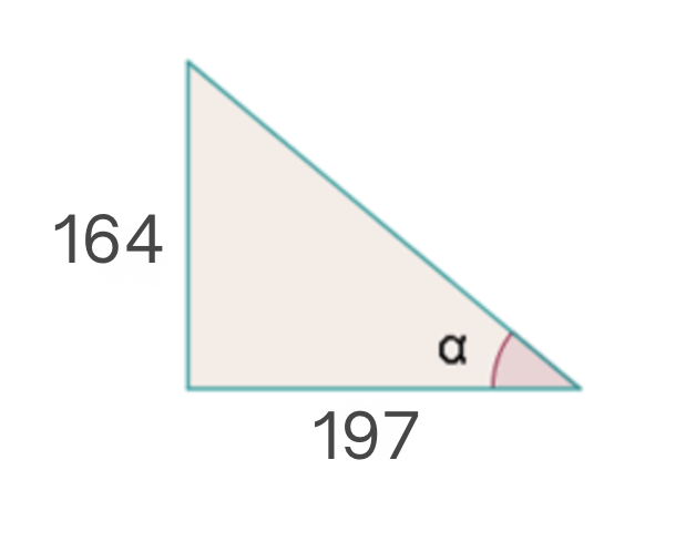 we will first calculate its tangent using the legs and then calculate the arctangent: