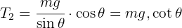 3 A cable embedded in the ceiling supports an object of mass m, which has a cable supporting another object that has half its mass. What is the tension in the cables?