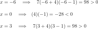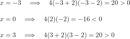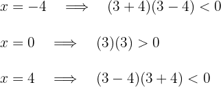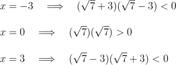 A point is taken from each interval and evaluated in the quadratic inequality to know the sign of each interval. For example, the triad of values