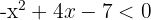 Since the sign of the quadratic term coincides with that of the inequality (negative-less than), the solution of the inequality is all real numbers
